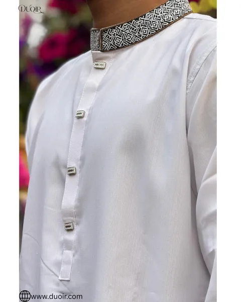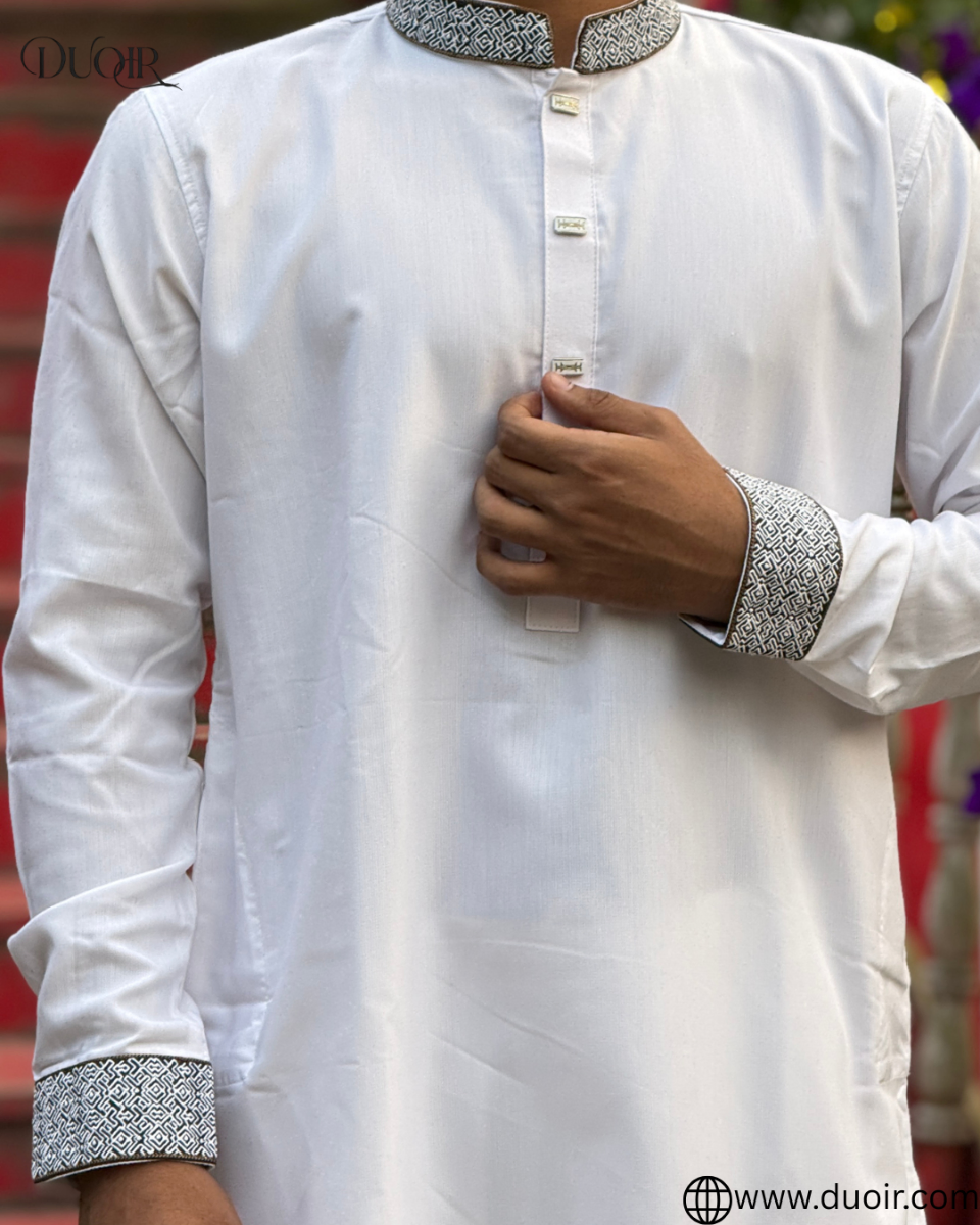 Crafted for those who never compromise on class. This Imperial White Panjabi embodies purity, prestige, and quiet confidence — a true statement of refined taste.